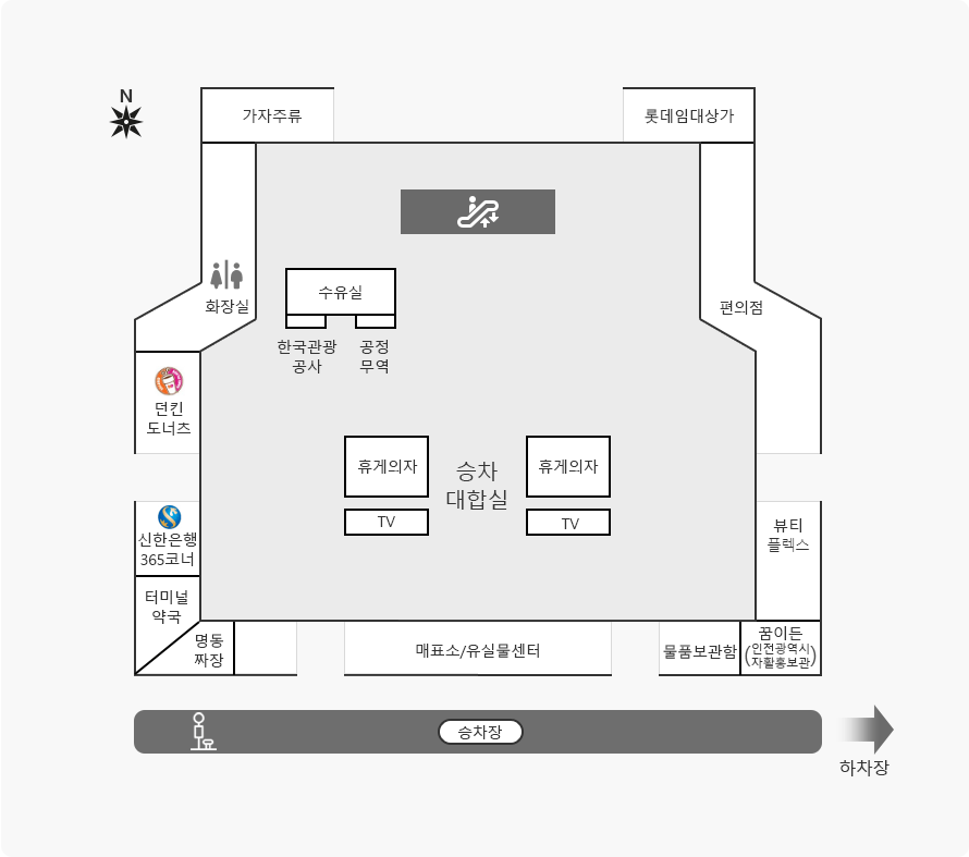 터미널 내부에 있는 시설들을 볼 수 있습니다.